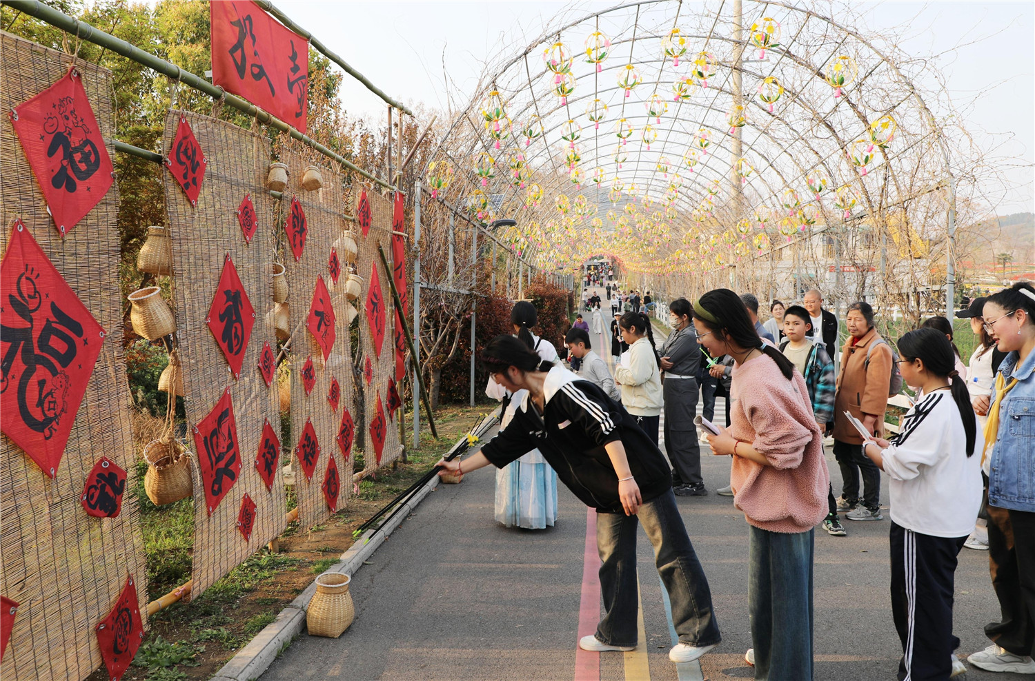 “我们正是靠梅花鹿养殖起家,一步步把特色养殖做成了文旅产业。”景区负责人介绍,从单一养鹿基地起步,小镇持续迭代文旅业态。今年,更是大胆突破,不再止步于赏花观景的体验,而是将民俗融入春日游园,让传统农耕文化与民俗趣玩碰撞出新潮火花。
