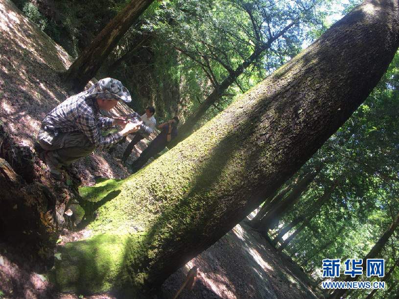 ?6月1日,位于安徽省休宁县鹤城乡新安源村的皖南最大古树群,摄影爱好者用镜头记录古树的长势。