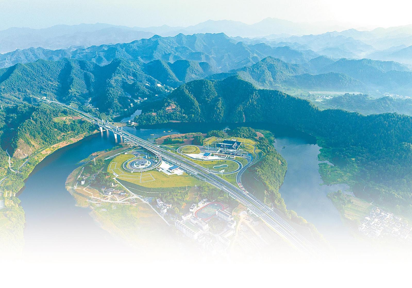 题图:8月26日,航拍位于黄山市歙县境内新安江畔的溧宁高速公路深渡服务区。溧宁高速途经江苏、安徽、浙江、福建四省,连接了黄山、千岛湖两个国家5A级景区,建成通车后有力促进了沿线地区旅游开发和经济社会的发展。 通讯员 肖本祥 摄