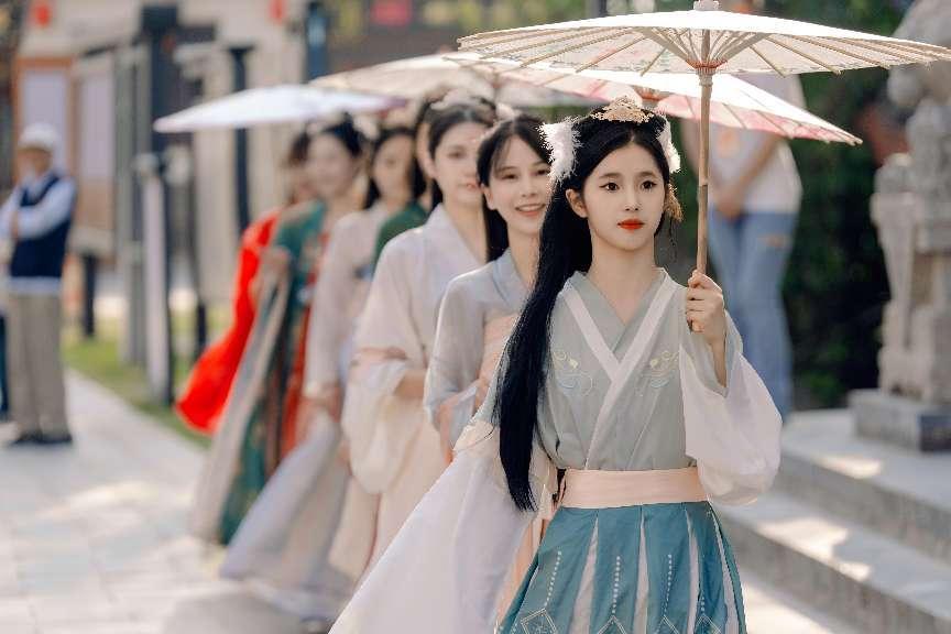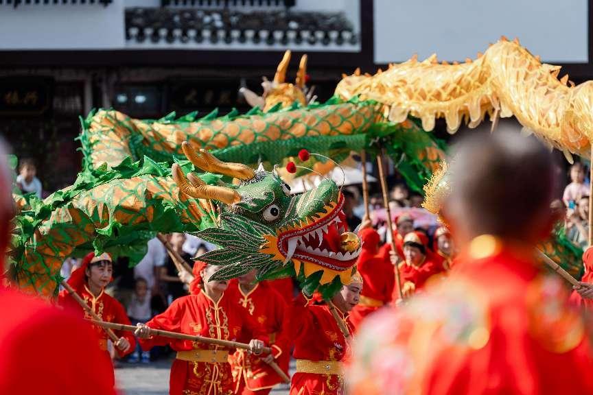 双节期间,三河古镇景区推出多元化的民俗表演,变脸、舞龙、闹花船、庐剧等非遗民俗文化在这里上演;三河古镇IP人偶互动,古街汉服巡演等营造出水乡三河的国风味,提升游客的参与度和体验度,也吸引了周边游客前来打卡参与。古镇更是结合节日属性以及古街文化氛围,打造系列国风舞蹈礼乐表演,吸引游客听戏赏景。据统计,“双节”期间,演艺活动共计110场,累计观看人数超4万人次。