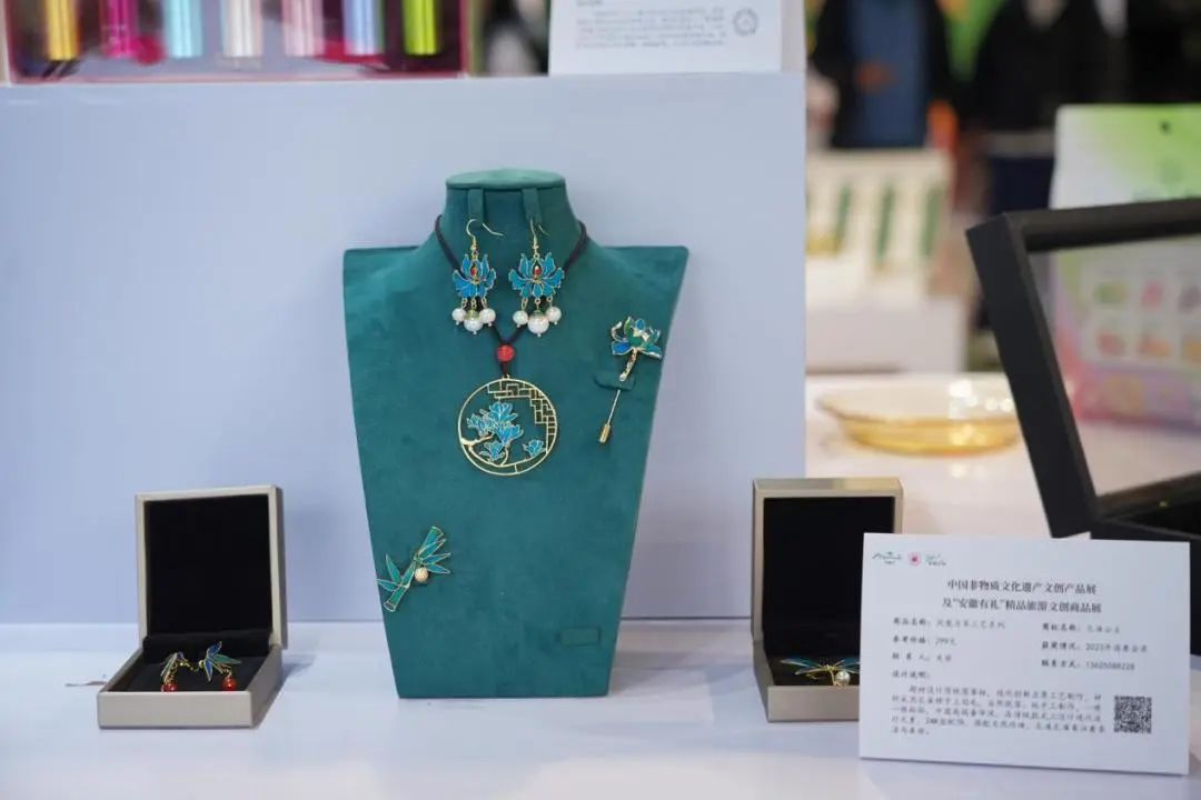 “这套首饰怎么购买?上面的点翠太漂亮了,很‘新中式’。”走进展区现场,一位来自合肥的游客眼光“毒辣”,一眼就相中了获2023年中国特色旅游商品大赛金奖的“孔雀公主”凤凰点翠工艺系列。她掏出手机扫码下单,“尤其是这款耳环,我都能想象出它搭配我旗袍的样子!”
