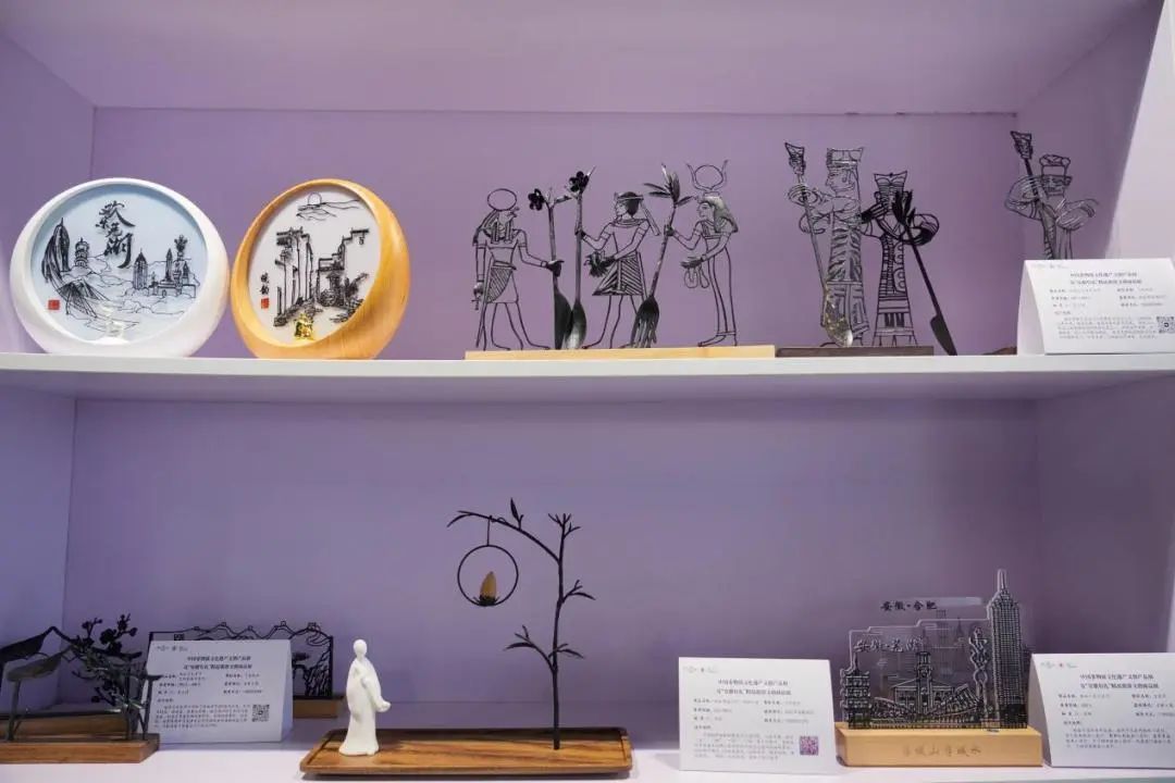 作为国家级非物质文化遗产的芜湖铁画,在展区现场占据了不小的篇幅。精巧的铁画餐具、铁画香道、铁画席卡、铁画桌台……有着300多年历史的它们,也让非遗技艺在“守艺”中不断创新。