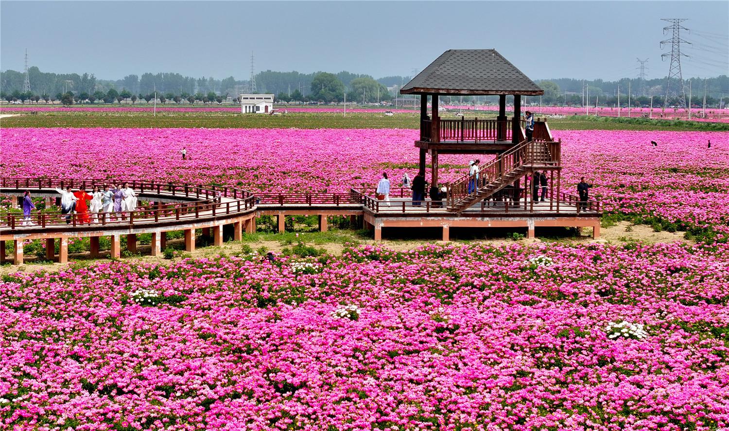 在亳州谯城区十八里镇蒋李村,游人在芍药花海里赏花游玩。通讯员 刘勤利 摄