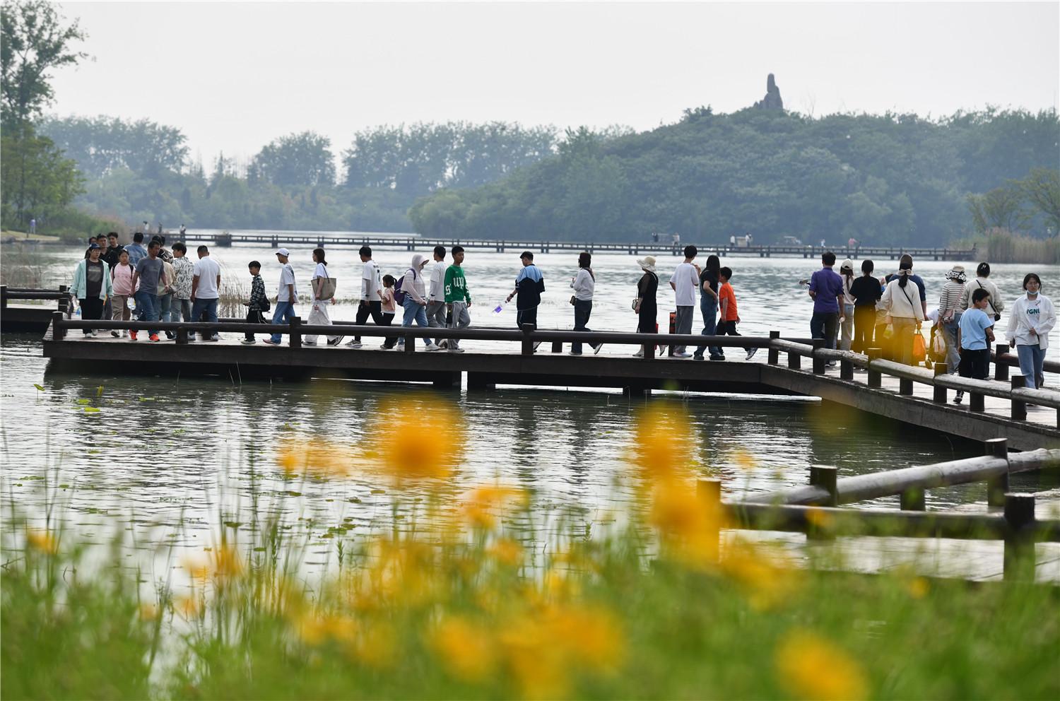 人们在阜阳市颍州西湖游玩。通讯员 卢启建 摄