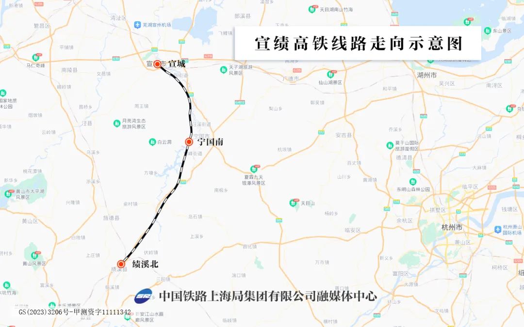 宣绩高铁位于安徽省宣城市境内,正线全长115公里,设计时速350公里,全线设宣城、宁国南、绩溪北3座车站,其中宁国南站为新建车站。