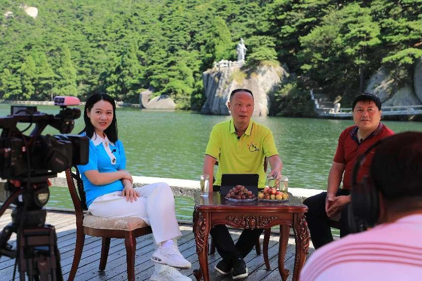 潜山市委常委、天柱山风景名胜区管委会副主任舒寒冰,潜山市天柱山风景区宣传信息中心主任、国家高级导游员许一川,天柱山博物馆讲解员陈院琴与周群一起,在周群抖音直播间与网友互动交流。