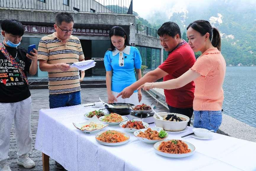 临近中午,一桌丰富的美食盛宴已备好,天柱石耳老鸡汤、痘姆古陶红烧肉、黄柏粉丝、官庄豆皮卷、黄泥粉蒸肉、山粉圆黑猪肉、龙潭竹笋、农家手工面等独具天柱山特色的美食一一展示在直播间的镜头下,周群与网友分享美道美食的观感、口感,潜山市天柱山风景区宣传信息中心主任、国家高级导游员许一川还运用丰富的学术解说,将美食的传承、制作工艺、文化内涵娓娓道来,网友戏称俨然成了一场“勾人魂魄”的美味之旅。