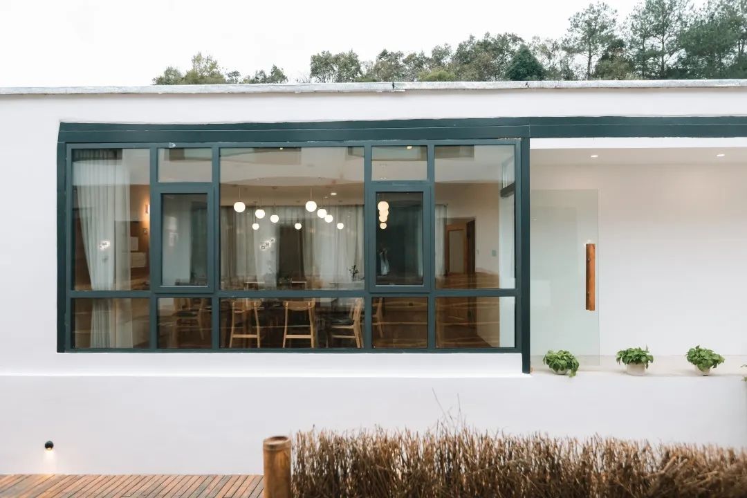 民宿共有14间房,大大的落地窗,望得见窗外的乡野美景,枕着星空果园入眠。画龙点睛的徽派元素,马头墙、老窗格、雕花牌匾恰到好处地体现着民宿主的巧妙心思。