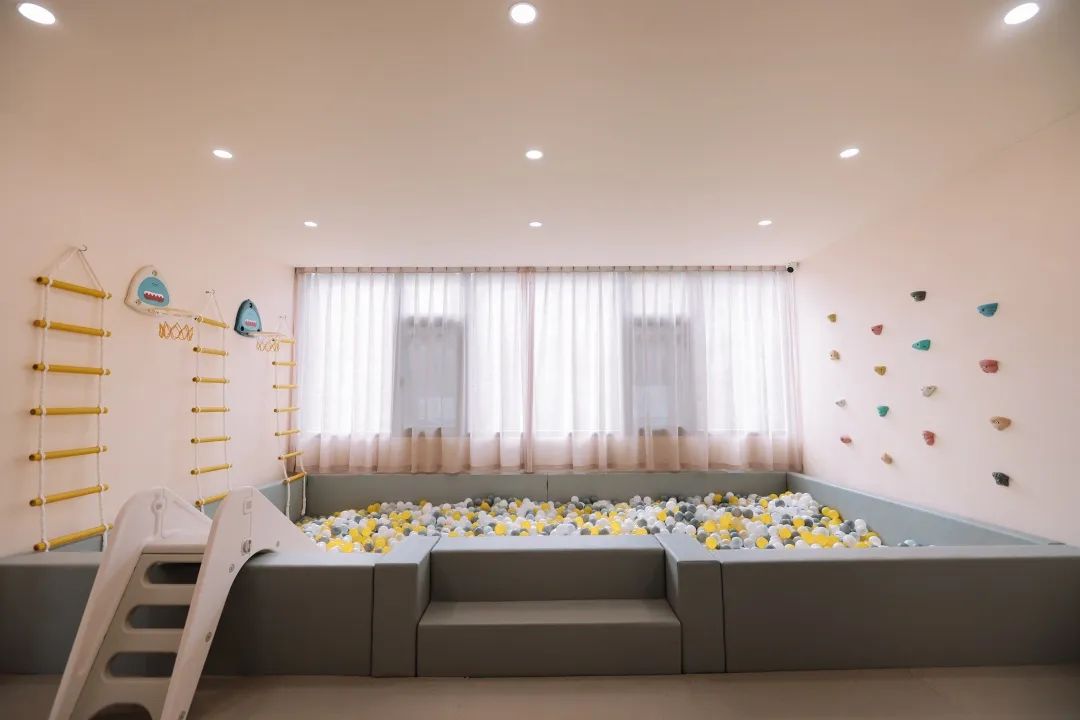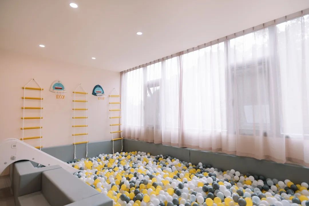 若是带娃出行,亲子房自是不二选择,十几平米的海洋球池里有滑滑梯,攀爬架,篮球框,攀岩壁等多样选择,整片的乐高墙提供了自由创造的广阔空间,孩子们可以安全开心的玩耍,打造出孩子们的理想国度。