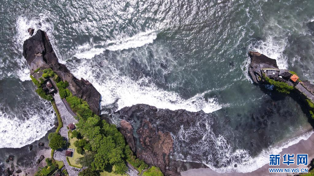这是12月18日在印度尼西亚巴厘岛拍摄的海神庙景区(无人机照片)。