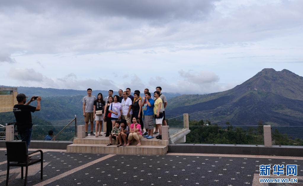 12月19日,在印度尼西亚巴厘岛,游客在京打马尼火山附近留影。