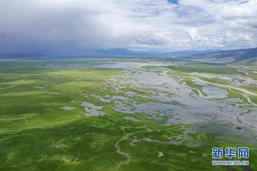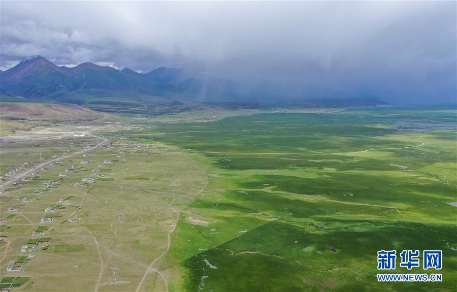 这是西藏当雄县境内的草原(8月9日无人机拍摄)。 进入雨季,藏北当雄县境内的牧场水草丰美,牛羊膘肥体壮。藏北地区是西藏重要的畜牧业产区之一,产自藏北地区的酥油、酸奶、牛羊肉等产品销往各地,是当地牧民的主要收入来源。 新华社记者 普布扎西 摄