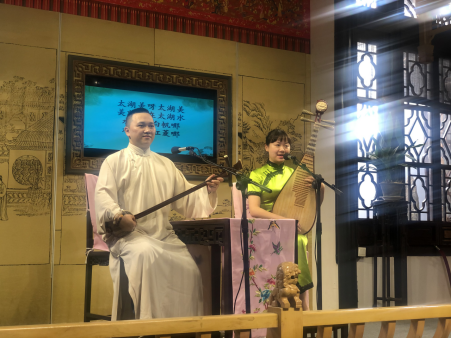 一个地域有一个地域不同的文化,在苏州,评弹就是属于苏州人的文化。离中国昆曲博物馆不远处的中国苏州评弹博物馆里,评弹演员正唱着《太湖美》,吴语说唱的评弹,是评话与弹词的合称,至今约有四百余年历史。浓浓软语,优雅唯美,引得台下的记者们连连拍手称赞,精彩的表演,展示了苏州评弹的魅力。