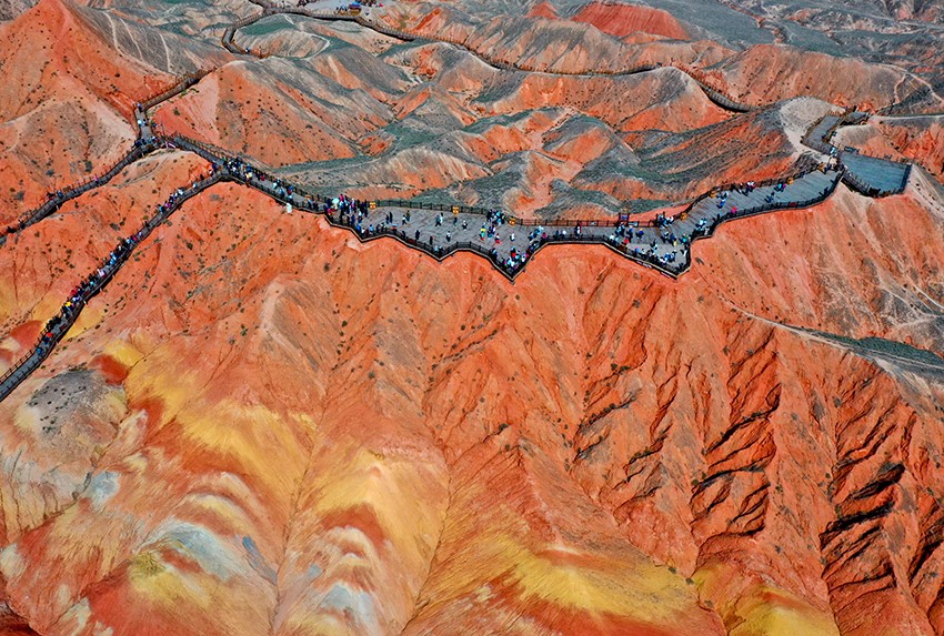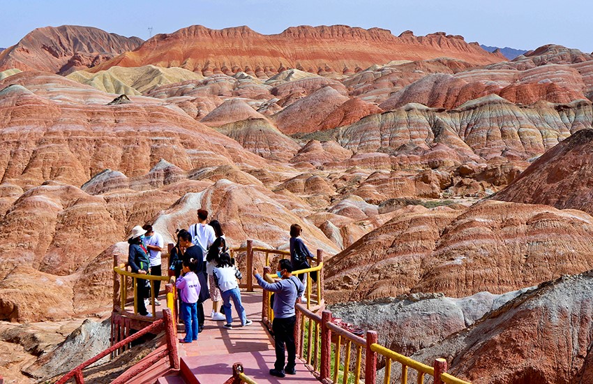 国庆假期张掖七彩丹霞景区热力不减 人气高涨