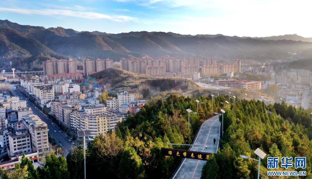 陕西省商洛市商南县是秦岭深处的一个山区小县,过去县城发展相对落后,随着城市建设快速推进,如今市容市貌有了很大提升,配以山川、河流、树木等自然景观,绘成一幅美丽画卷。 新华社记者 陶明 摄