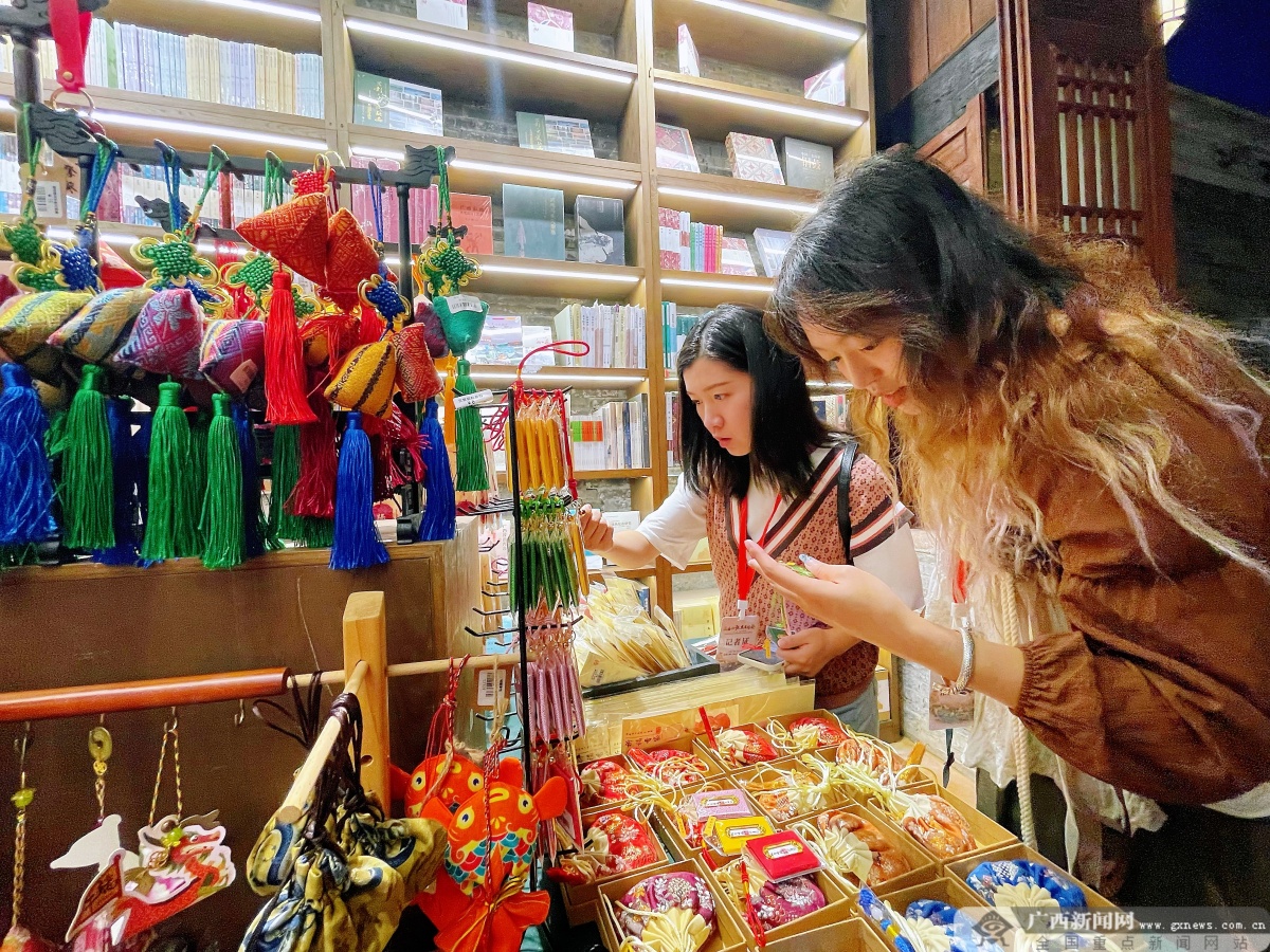 初入街区,古色古香的建筑便吸引了采访团的目光。青砖黑瓦、飞檐翘角,彰显着传统建筑的魅力。随着夜幕降临,整个街区变得灯火通明,“烟火气”升腾,犹如一幅生动的画卷,展现出南宁的生机与活力。走入小巷深处,只见不少店铺的门头上都挂着一串串大红灯笼,为夜晚增添了一抹亮色,游客们穿梭于店铺之间,或驻足欣赏古色古香的工艺品,或品尝着地道的特色小吃,或领略传统文化的韵味。