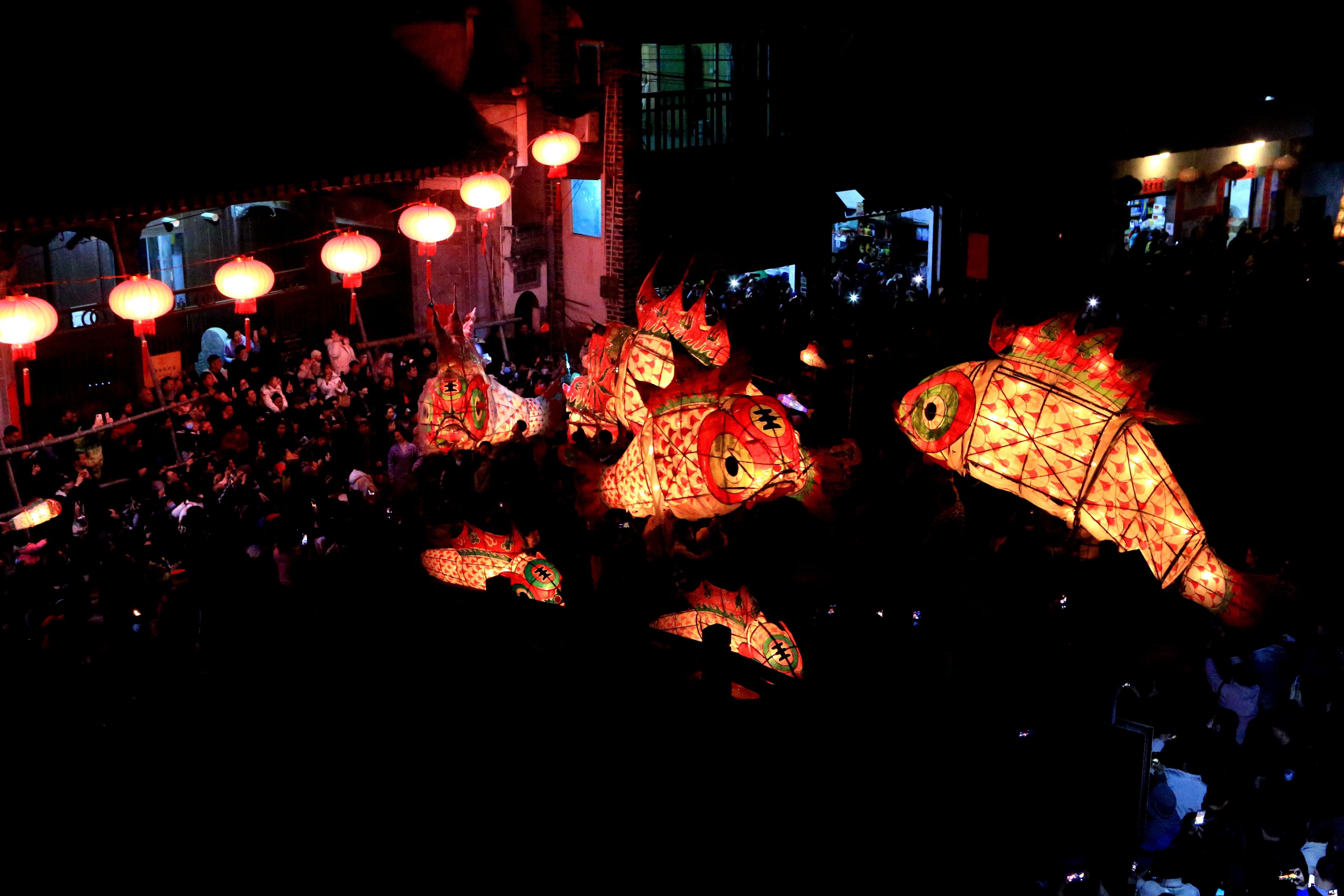 正月十三晚上,伴随着响彻山谷的锣鼓、鞭炮声,安徽歙县溪头镇汪满田村的元宵嬉鱼灯正式拉开了帷幕。