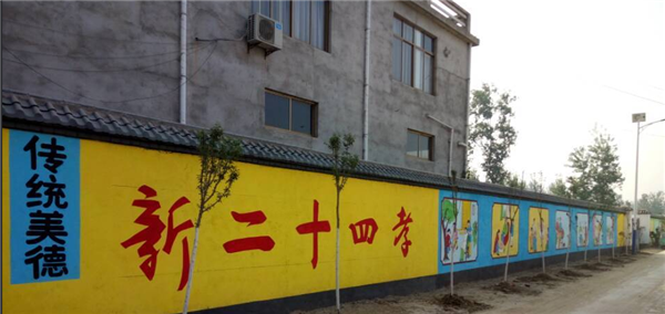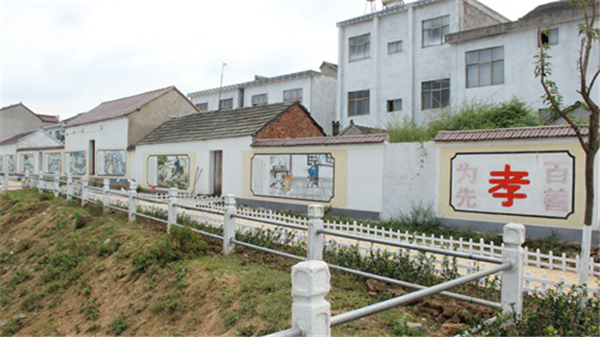 黄圩镇党委政府严格按照科学规划布局美、村容整洁环境美、创业增收生活美、乡风文明身心美的目标要求,把文化建设与美丽乡村建设结合起来绘制《新二十四孝》公益广告墙。