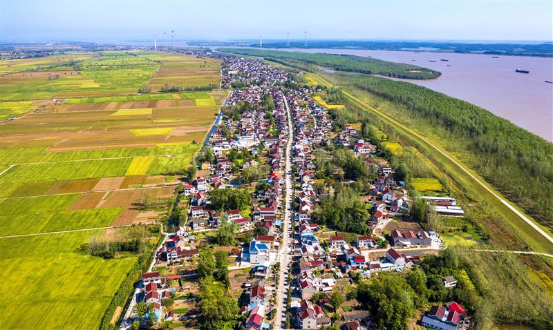 图为航拍下的望江县雷池乡东洲村村貌