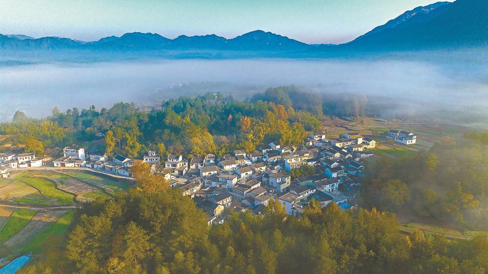 12月11日,冬日的绩溪县伏岭镇大坞村层林尽染,与古村落构成一幅美丽乡村画卷。近年来,该县加强传统文化资源保护和利用,26个传统村落保持较好风貌,促进乡村旅游发展,助推乡村振兴。通讯员 李晓红