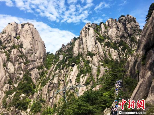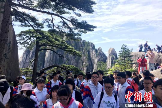 5月7日,黄山风景区迎大批游客,研学旅行学生组成的队伍成为一道风景线。张强摄