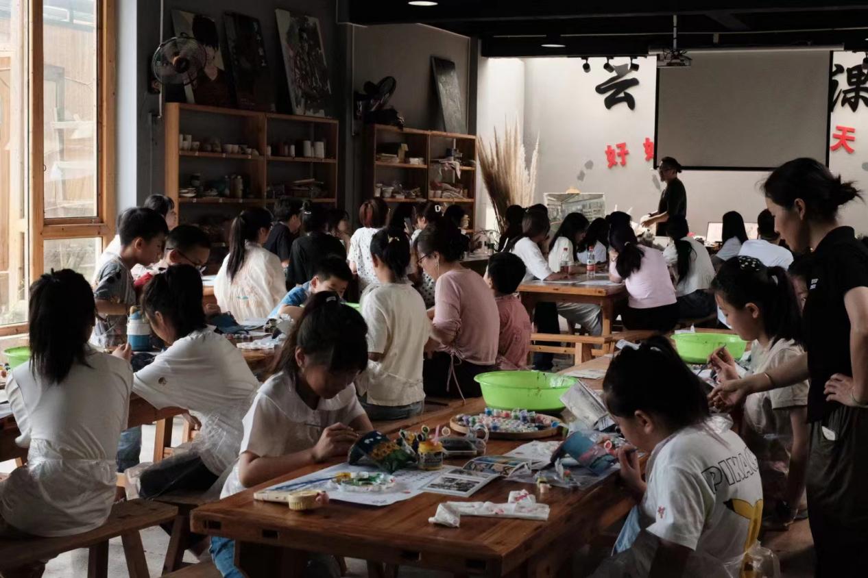 日前,碧阳镇碧山村云贤研学基地,研学旅行指导师汪苗苗正和当地的手工艺人一起教孩子体验鱼灯、版画、徽墨等各种徽州传统技艺。“我们6月份对接的夏令营团队有40多个,目前还在对接的有20个,大部分来自北京和长三角地区等。今年暑期,我们研学游一天的场次能达到6场,从6月到8月,档期都早已排满。”汪苗苗说。