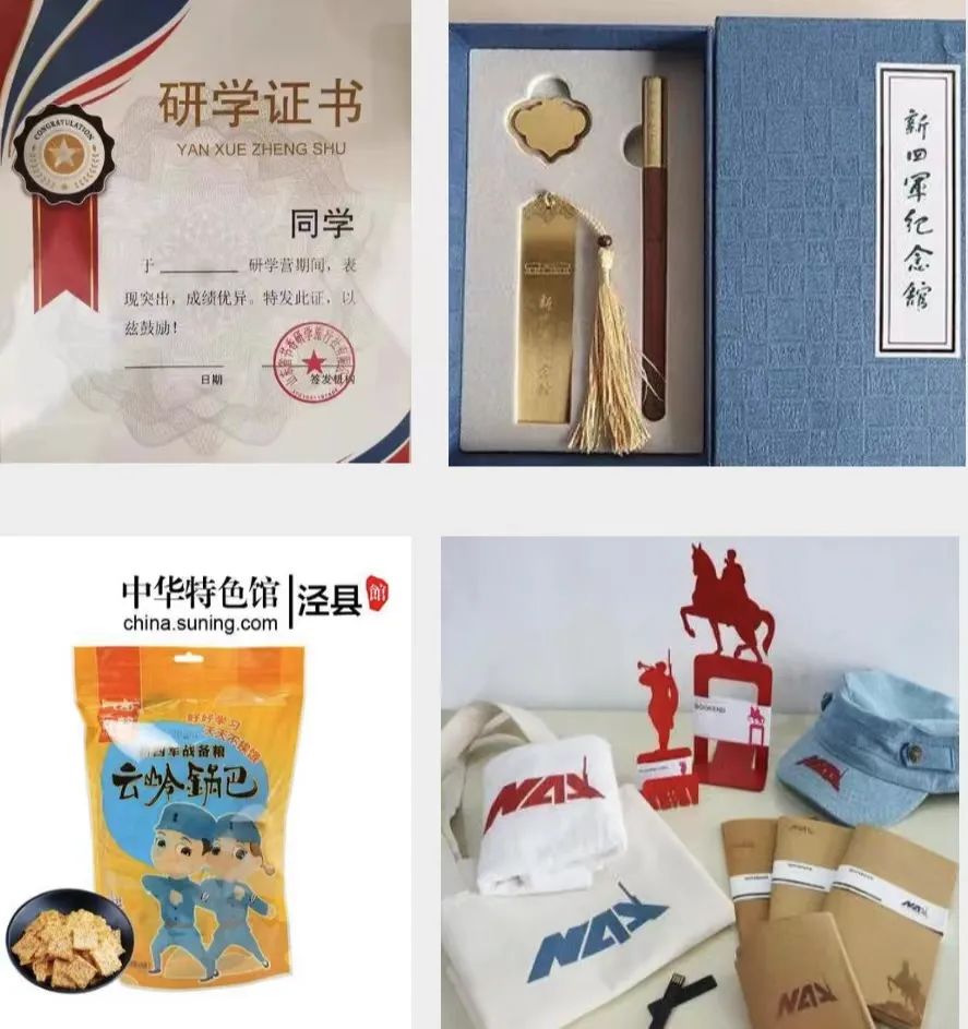 发放泾县红色文创纪念品、新四军锅巴……