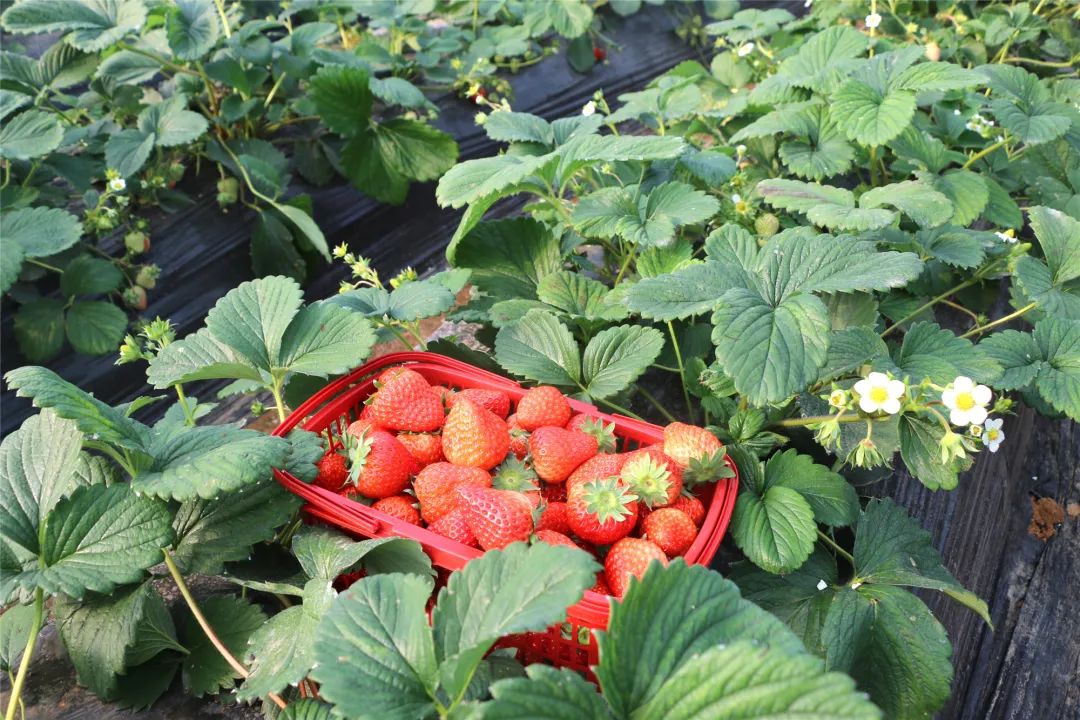 芭茅村草莓园采摘园里,草莓特有的清香顿时扑鼻而来,大片草莓映入眼,犹如一盏盏小灯笼一般点缀在绿叶间。摘的时候就能闻诱人的草莓香,咬上一口,淡红色的果肉细嫩多汁。(宜秀区文化和旅游局)