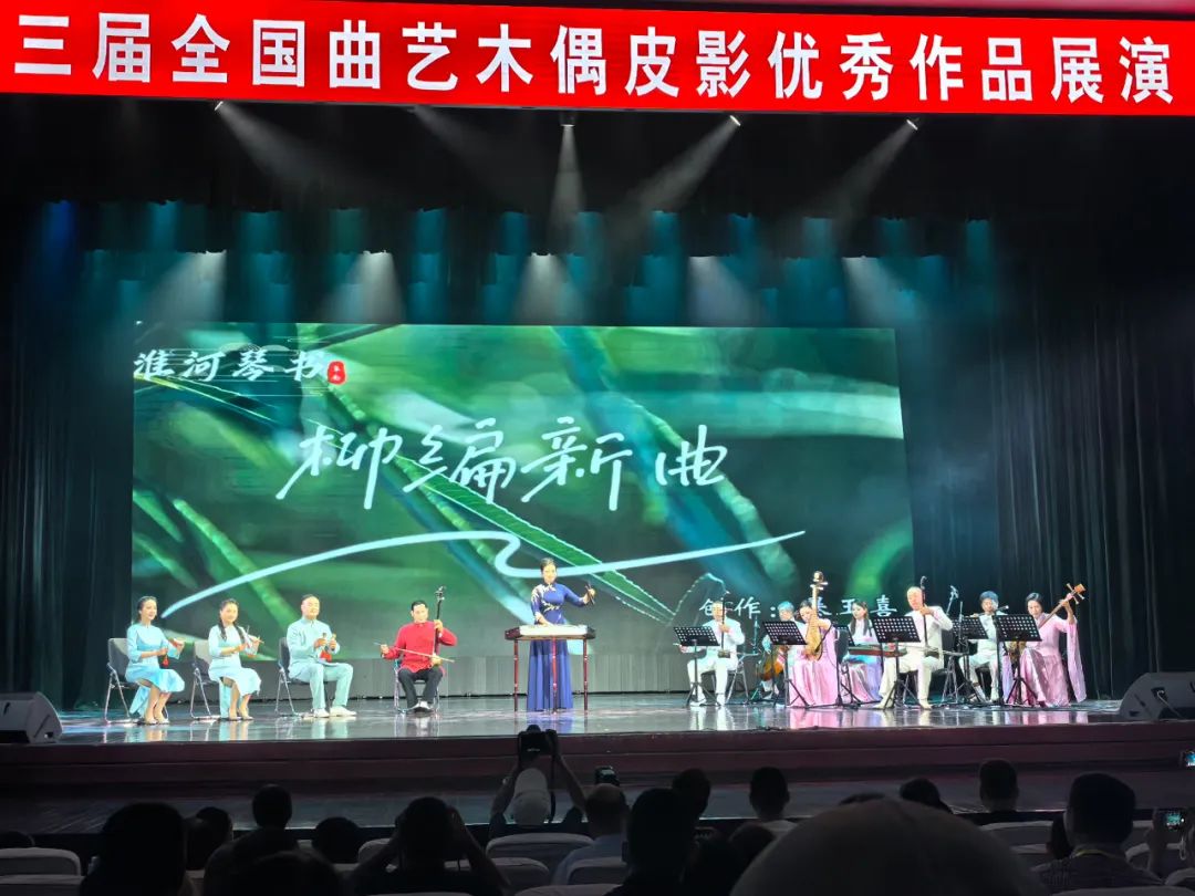 第三届全国曲艺木偶皮影优秀作品展演是一场具有重要影响力的文化艺术盛会,旨在展示我国曲艺、木偶和皮影艺术的最新成果,传承和弘扬中华优秀传统文化。在展演现场,淮河琴书《柳编新曲》以其独特的艺术魅力和精湛的表演技艺征服了观众。演员们的精彩表演赢得了阵阵掌声和喝彩声。