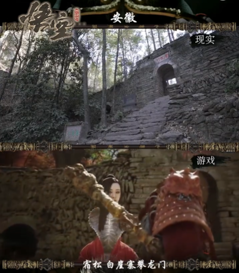 游戏中,紫云山段落部分场景与位于安徽省安庆市宿松县趾凤乡境内的白崖寨十分相似,除了门头,连瓦片摆放方式都一模一样。同款打卡地必须安排!