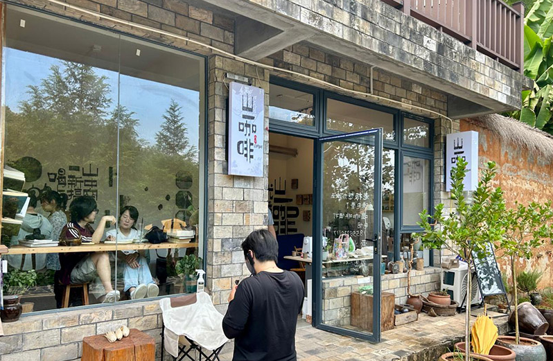 在工作室旁,刘云开设的“山一咖啡”也人气满满。