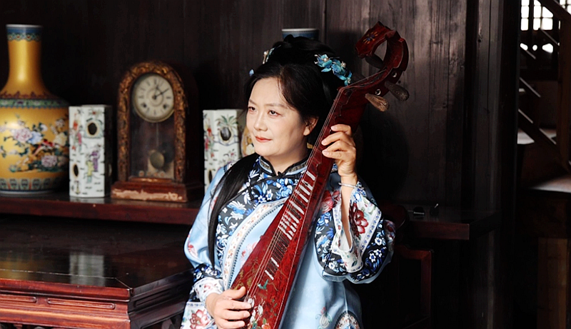“对对对,就是这样,坐在这里抱着琵琶,看着镜头就好,很好出片的哦~”