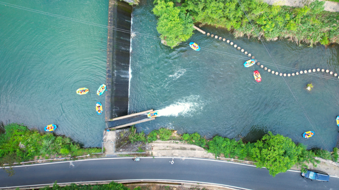 夏霖九天银瀑景区内,飞瀑倾泻而下、小潭静谧幽深、树林茂盛葱郁,风光十分秀丽,更有诸多游玩项目可以前来体验。喜欢漂流的朋友,这里的漂流也别错过哦,乘着皮筏艇顺流而下,愉快乘个凉吧。