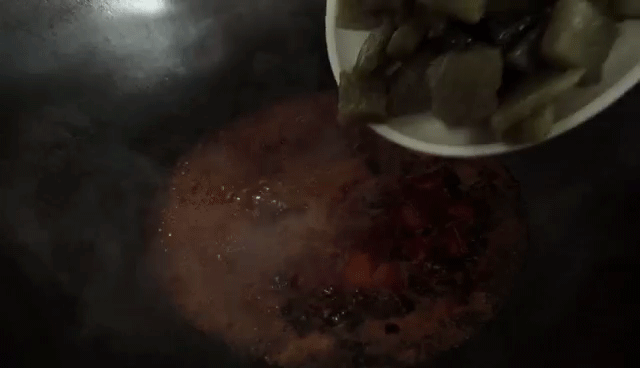 锅洗净,煸五花肉,出油后肉被炒成焦黄色,再加葱姜蒜、酱油、盐等调料,翻炒后加水。