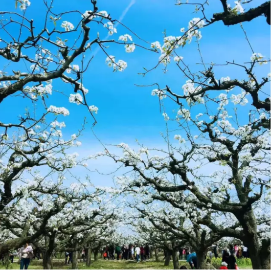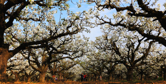 沟东村广栽梨树,多达3000亩。一眼望不到边的梨花,一簇簇,一层层,像云锦似的漫天铺去。在和暖的阳光下,如雪如玉,璀璨晶莹,暗香浮动。