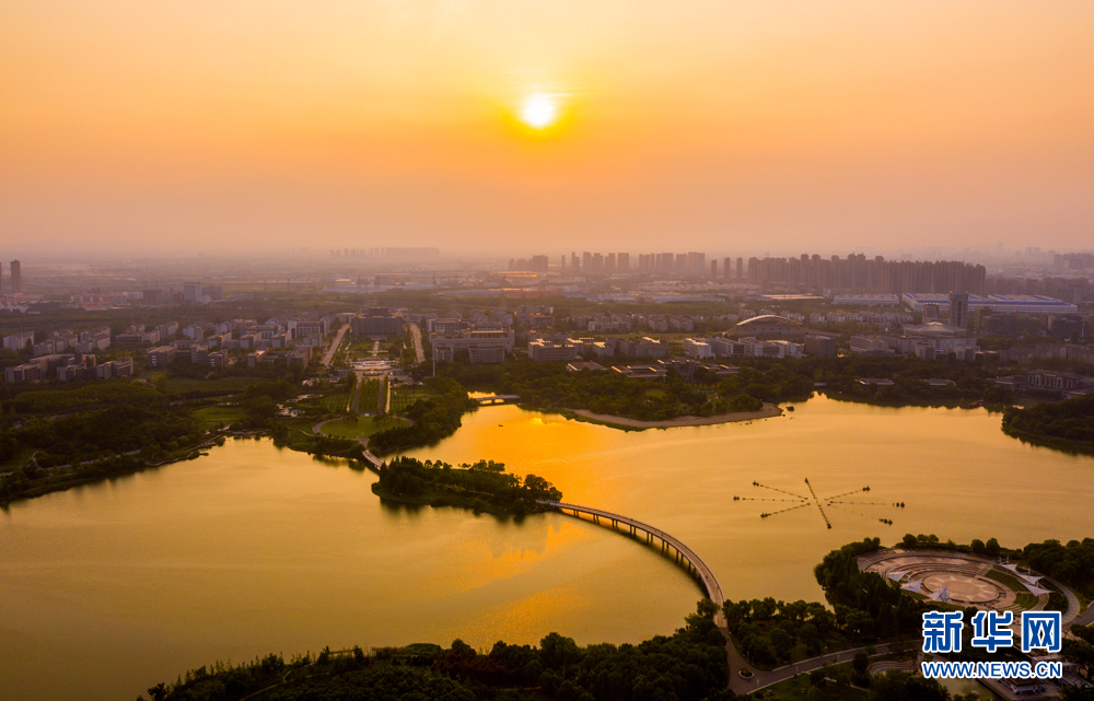 8月21日,航拍安徽省合肥市翡翠湖公园美景。