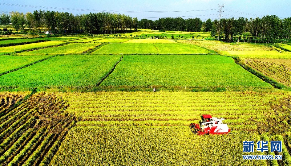 初秋时节,素有“淮上粮仓”之称的全国产粮大县安徽省六安市霍邱县200余万亩水稻相继成熟,乡村大地稻浪滚滚,一片金黄,呈现出一幅美丽的秋日丰收画卷。