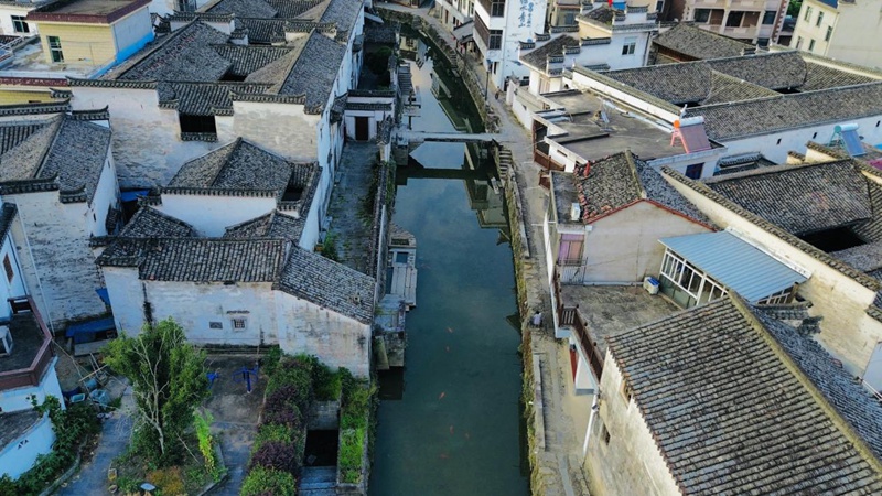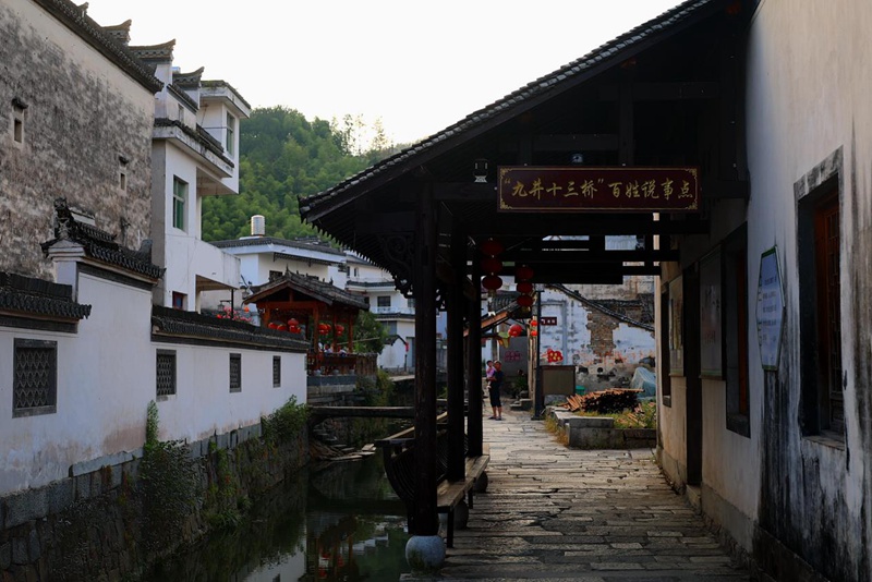 朱旺村的“美”,藏在一河、九井、十三桥的灵动布局中。朱溪河穿村而过,十三座石桥横跨两岸,河中九口水井形态各异,井水自河床涌出,澄澈如镜,与奔流河水和谐共存,形成“井水自清,河水自流”的独特生态奇观——“井水不犯河水”。这一自然与人文交融的杰作,辅以保存完好的徽派古民居群,宛如天然皖南水墨画,吸引四方游客。