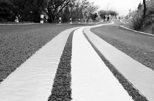 景区内的彩虹大道延绵向前,串联起沿线风光美景。红黄蓝三条彩虹线,从朝禹路南入口一直延伸到2.2公里外的观景平台,犹如一道彩虹环绕山间,很多游客都在此造型处打卡留念。