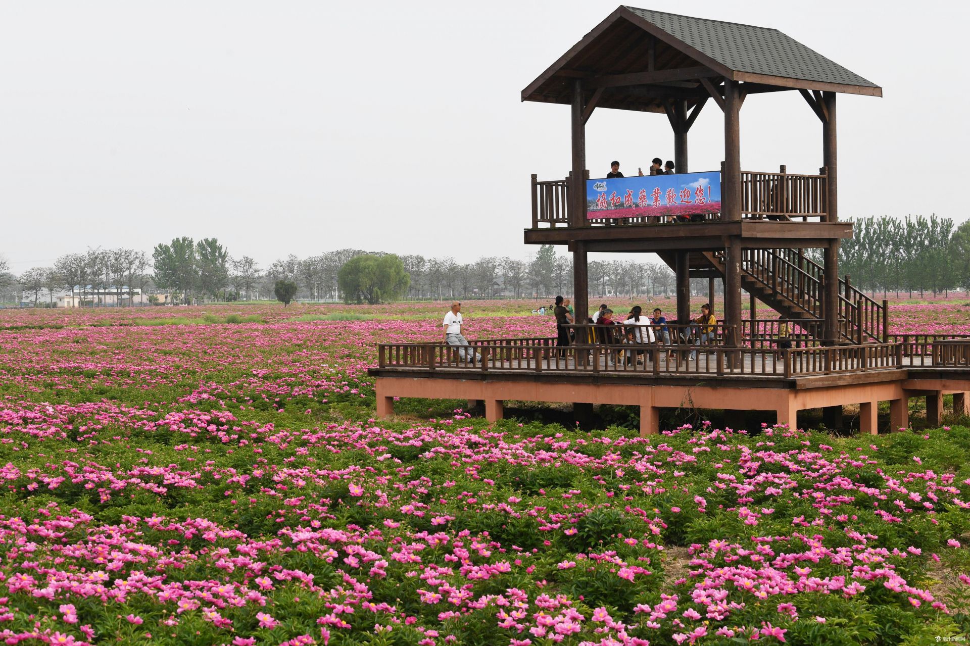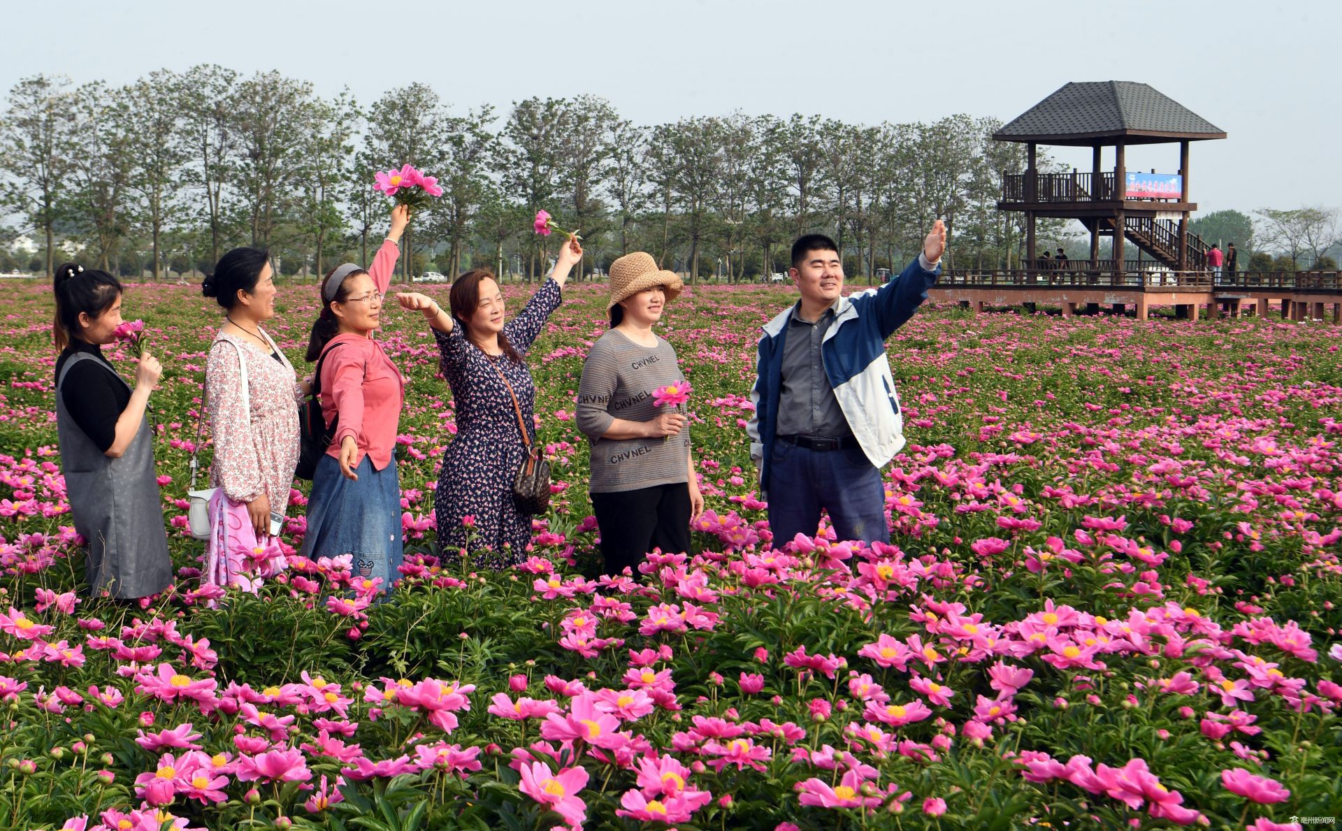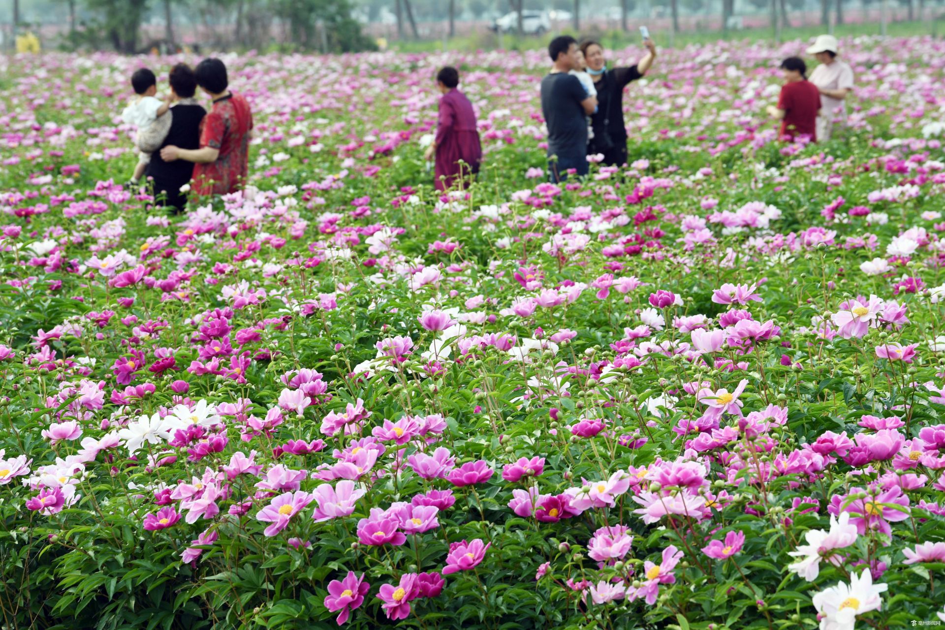 4月26日,在亳州市谯城区十八里镇蒋李村,游客在芍药花丛中赏花游玩。五一前后正值春夏之交,全国著名的“药材之乡”亳州市药农种植的30多万亩芍药花竞相绽放,花香四溢,吸引了许多游客前来观赏游玩。记者:张延林/摄