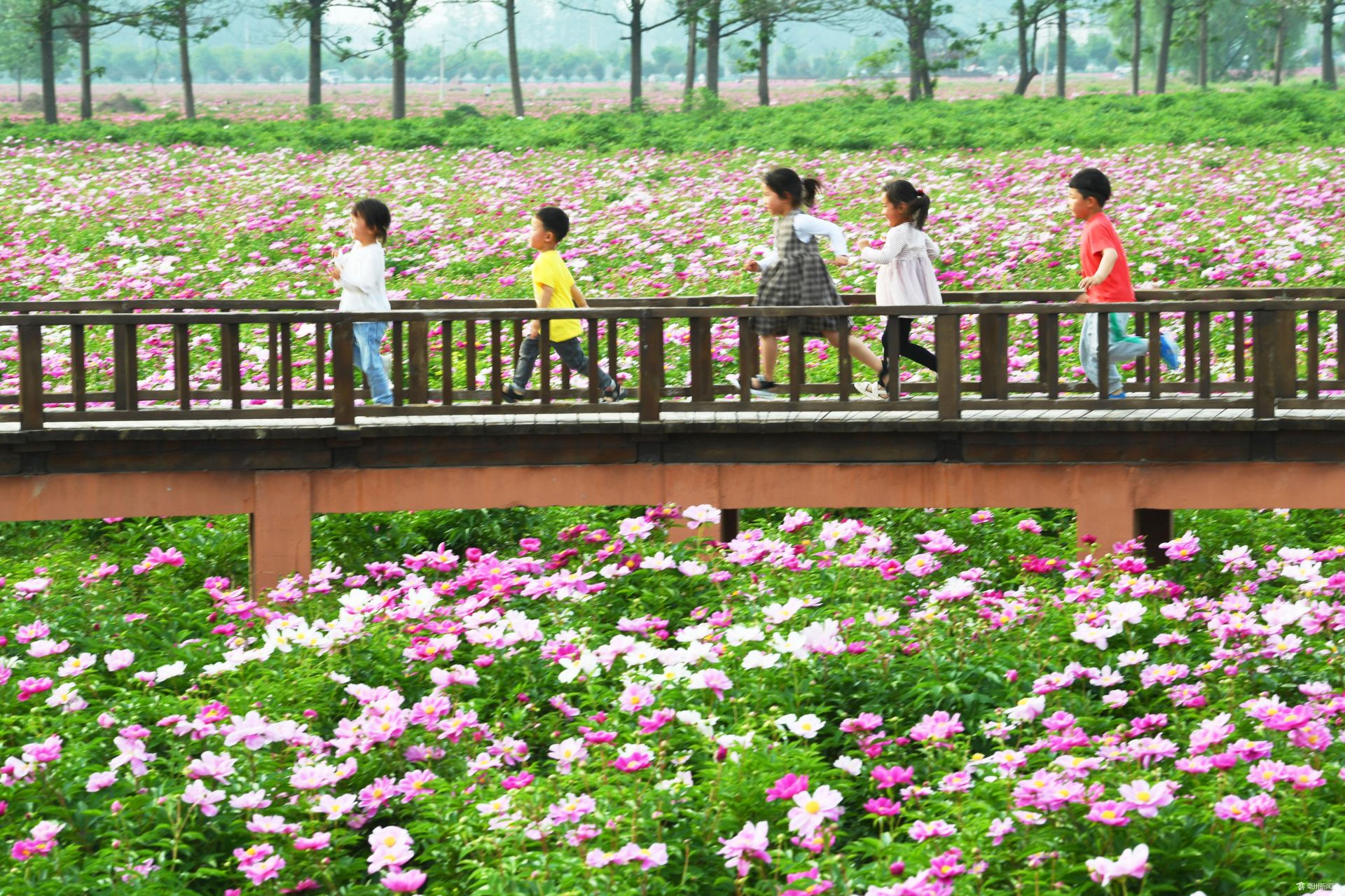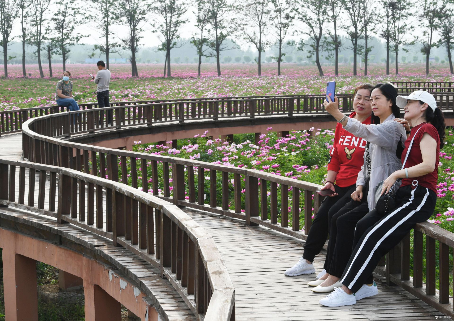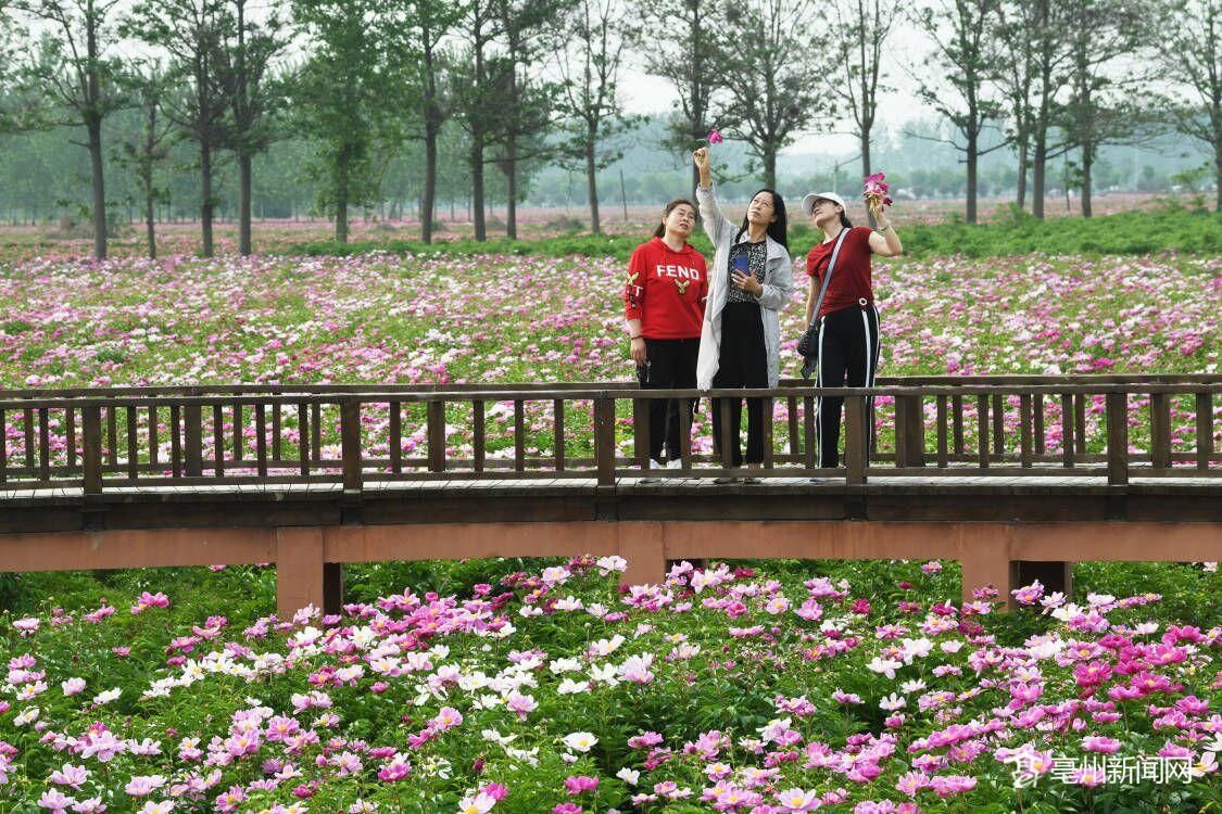 4月26日,在亳州市谯城区十八里镇蒋李村,游客在芍药花丛中赏花游玩。五一前后正值春夏之交,全国著名的“药材之乡”亳州市药农种植的30多万亩芍药花竞相绽放,花香四溢,吸引了许多游客前来观赏游玩。记者:张延林/摄