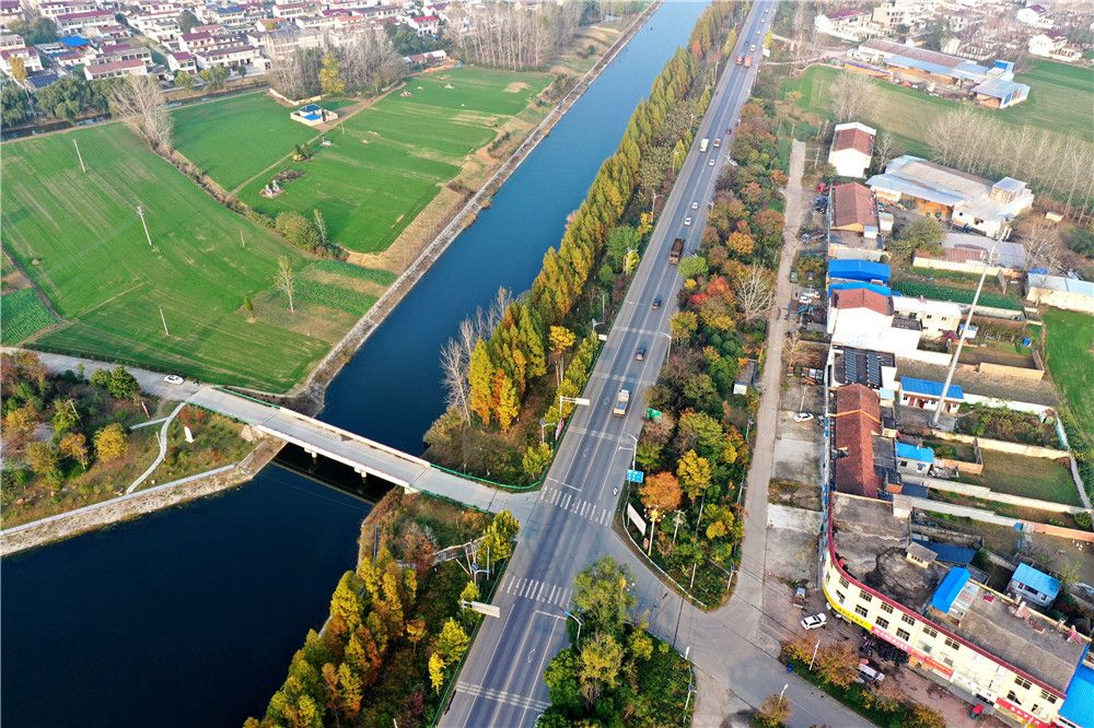 近日,无人机航拍的利辛县中疃镇阜蒙河畔,色彩斑斓,冬景如画。近年来,利辛县切实加大河道管护和水环境生态治理,通过疏浚清淤、绿化点缀等方式,提升河道“颜值”,为和美乡村增色添彩。(刘杰 王军)
