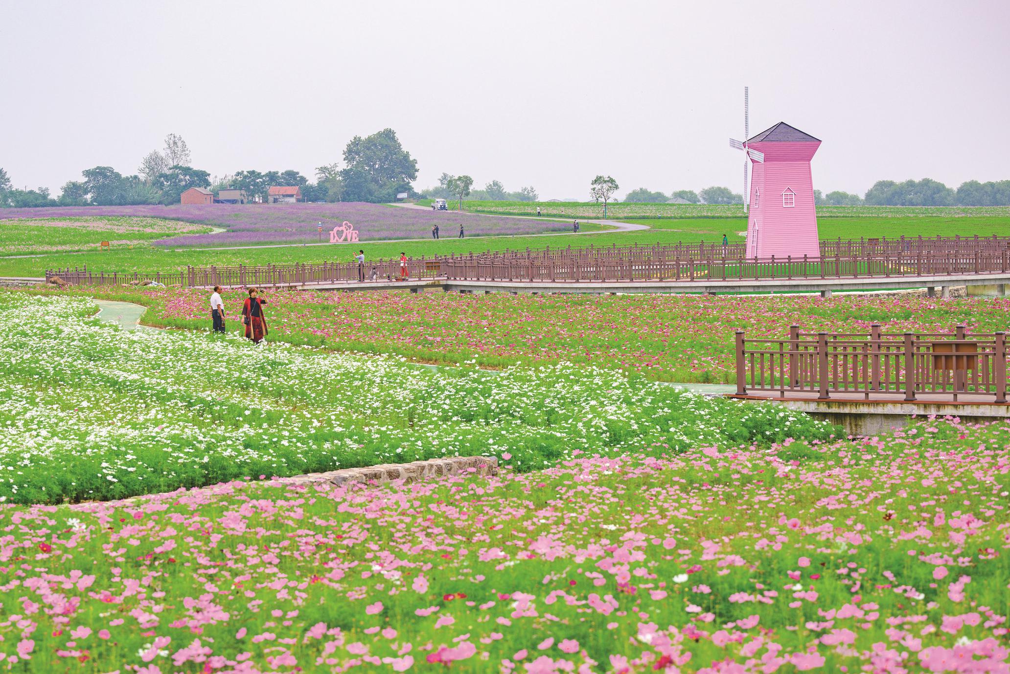近日,明光市女山湖镇举办女山湖花海开园仪式。该项目占地面积600余亩,其中建设用地40余亩,主要种植花卉有百日草、硫华菊、波斯菊、柳叶马鞭草,景区内含有美食街、蒸汽小火车、无动力儿童游乐设施、5D影院、射击馆、室外游泳池等项目,是集美食、观光、游乐于一体的旅游综合体项目。(全媒体记者计成军摄)