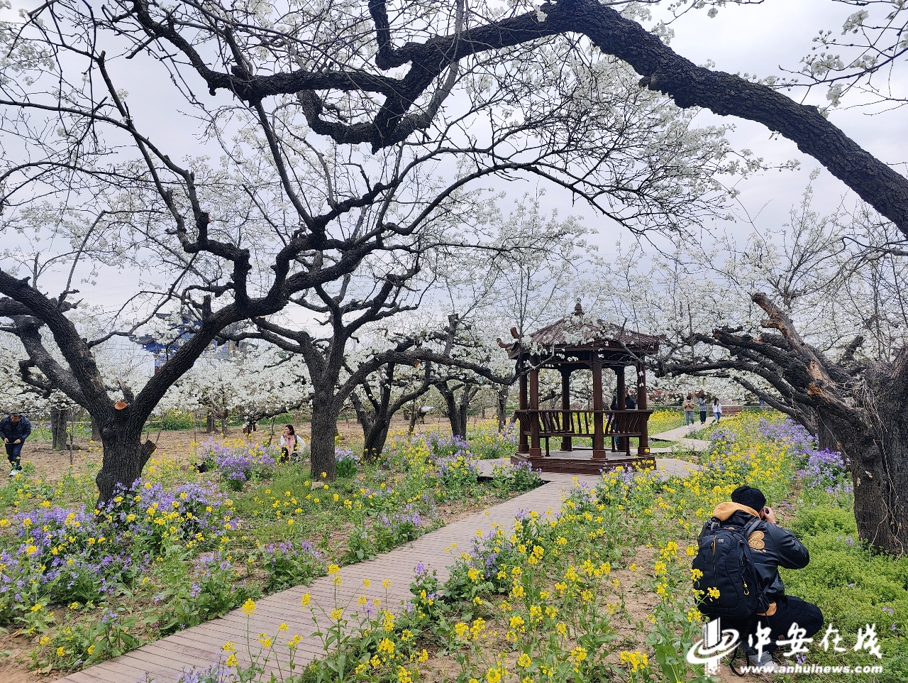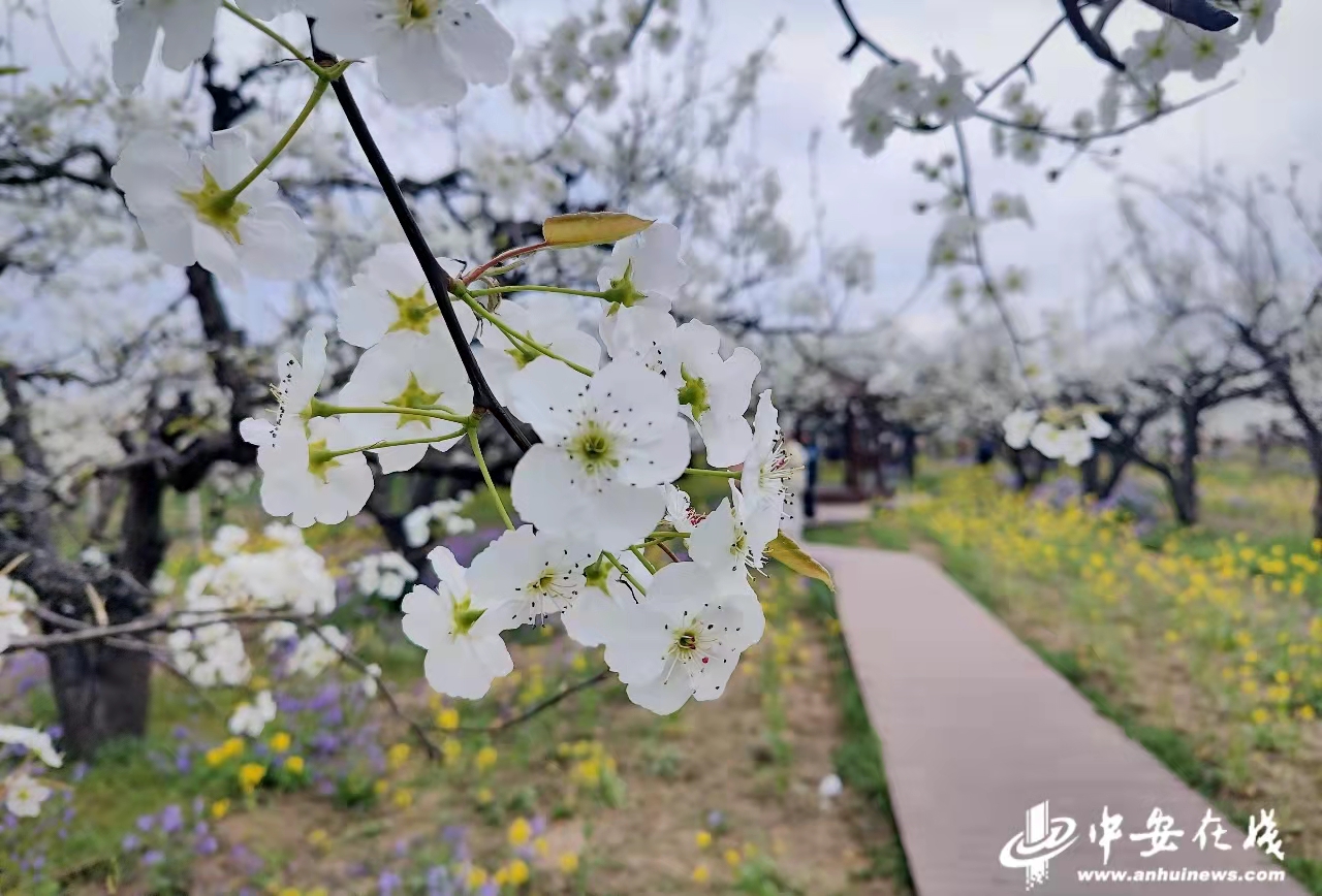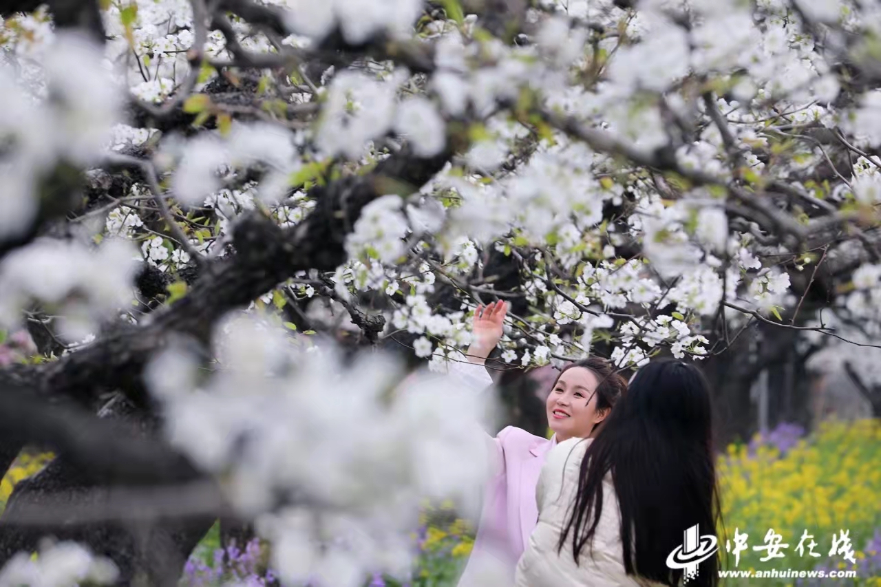 梨花正盛,春意正浓。3月31日,淮北市烈山区宋疃镇和村社区千亩梨园内,满树的梨花洁白如雪,大片的金黄色油菜花和粉红色桃花相映成趣,把和村装点的五彩斑斓。
