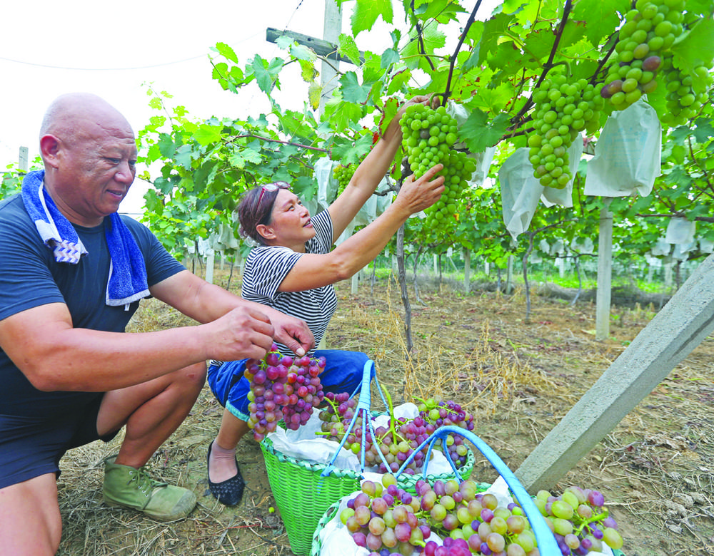 近年来,寿县八公山乡创新推动农文旅等业态融合,打造集文化体验、乡村观光等功能于一体的旅游目的地。同时,积极引导农民种植葡萄、桃子、枣子、梨等特色种植产业,拓宽增收渠道,增加农户收入,带动农民增收致富。当下,一幅幅“农业强、农村美、农民富”的乡村振兴新图景正在风景如画的八公山乡徐徐展开。图一、郝圩村李文军夫妇正在种植园采摘葡萄。图二、工人正在包装腐乳产品。图三、改造一新的八公山乡豆腐小镇景色。(记者倪军摄)