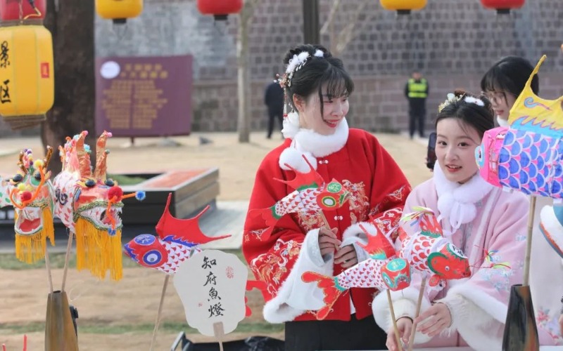 1月27日当天,歙县徽州古城,25个非遗文创摊位的产品依次排开,徽州鱼灯、徽墨歙砚、茶菊等众多非遗文创产品集中亮相,各家商户身着汉服,仿佛“穿越”,徽州四小挑轮番吆喝,吸引大批游客和市民近距离驻足。嬉鱼灯、舞龙等传统民俗齐荟萃,充分显示了这里的年味,还是徽州老味道。