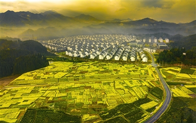 连日来,休宁县月潭湖镇移民新村周边油菜花盛开,仿佛铺上了一层金色的地毯。远山如黛,近水映翠,薄雾轻笼,徽派新居鳞次栉比,形成一幅绝美的大地艺术画卷。姜希明 李军/摄