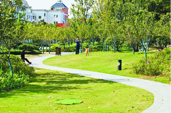 2019年以来,和县提标绿化项目设计,实施总面积约22万平方米的绿化建设及提升工程,现已完工。自创建园林县城至今,该县共新增绿化面积76.51万平方米,提升绿化面积4.38万平方米。图为市民在完成改造的陋室公园里游玩嬉戏。