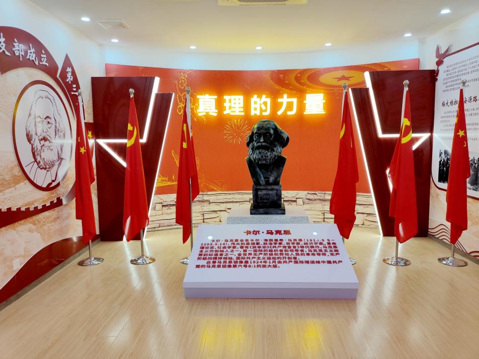 纪念馆位于旌德县版书镇龙川村,总面积约200平方米,展示内容为“三都农家”“寻求真理”“支部成立”“发展党员”“一波三折”“星火燎原”“今日新农村”七个板块,全面介绍皖南第一个党支部成立前后的情况。并按8:1比例放大仿制一尊1924年共产国际赠送给中国共产党的马克思银像。同时建设一个红色课堂并印制党课教材《第六号银像》。