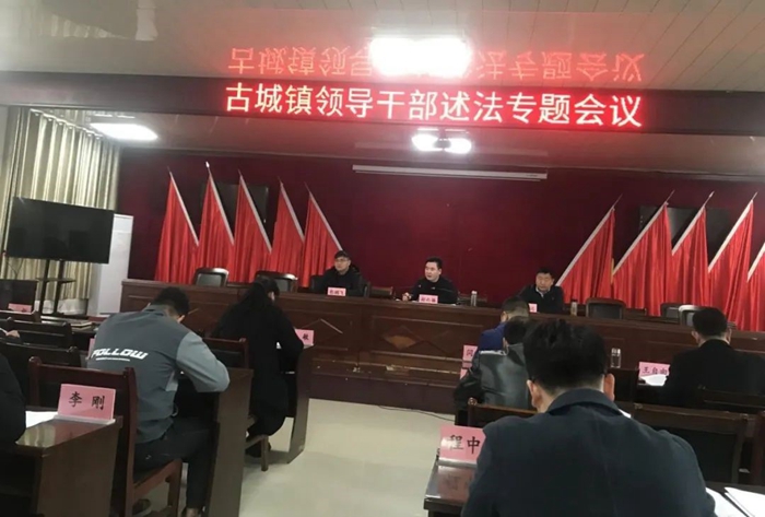 2024年3月17日,谯城区古城镇开展领导干部述法专题会议。会上传达学习了《党政主要负责人履行推进法治建设第一责任人职责情况列入年终述职内容工作方案》和《关于开展2023年度领导干部述法工作的通知》。随后,领导班子成员及村书记结合实际工作进行述法,围绕学习贯彻习近平法治思想、推进法治建设及依法履职情况、充分发挥领导干部示范表率作用等方面进行了简要汇报。